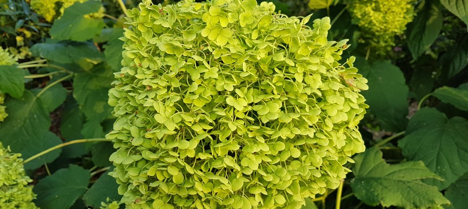 An outstanding shrub with very large white flower-heads which turn green in late summer, making them popular for cutting or drying. A good variety for cooler parts of NZ, it will still produce flowers on new stems if plant is damaged during winter due to snow and frost. It requires semi-shade and a sheltered location to protect the large blooms from wind. Can be susceptible to root disease, this is more prevalent when planted in wet soil, with humid conditions.