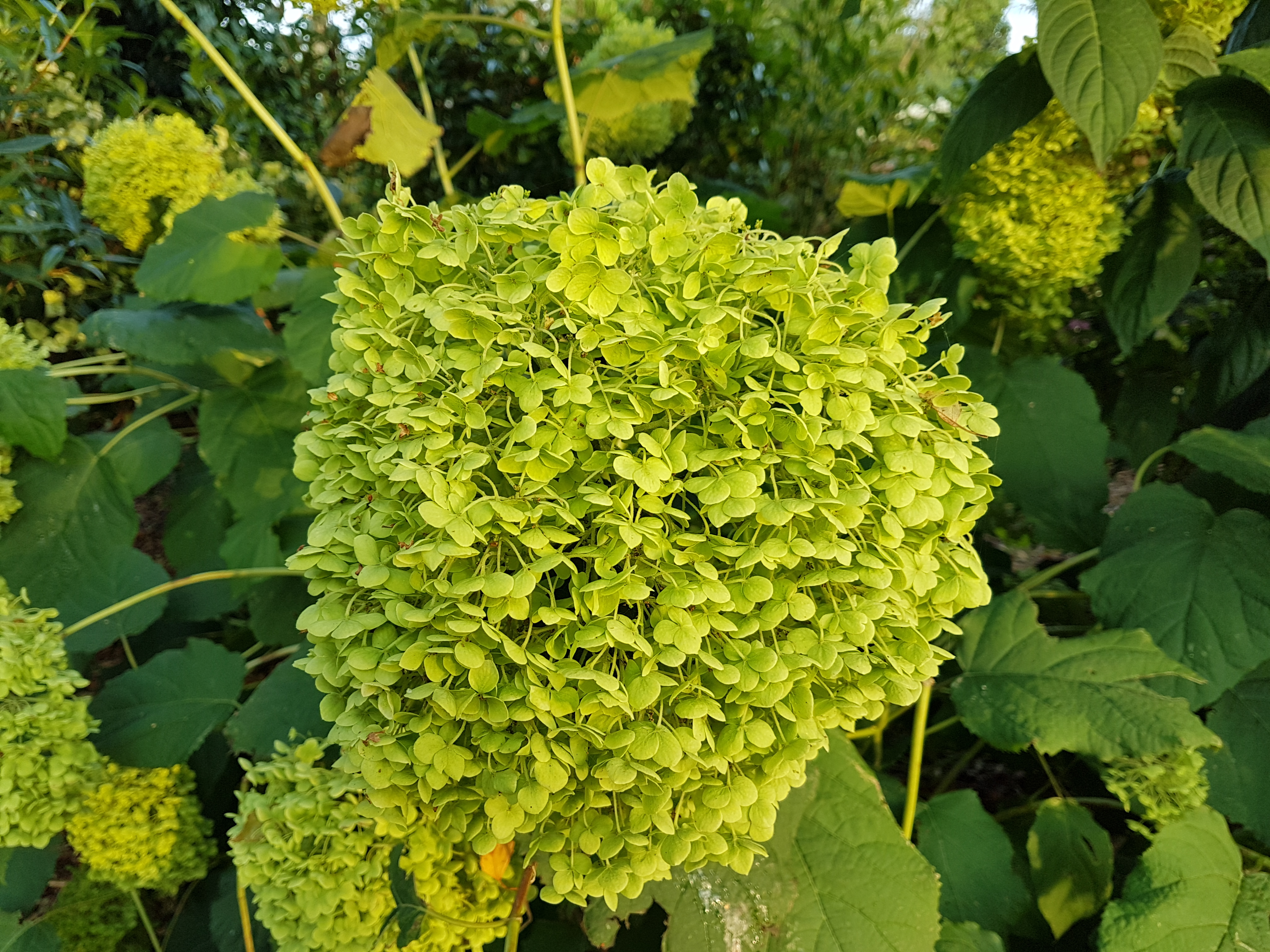 An outstanding shrub with very large white flower-heads which turn green in late summer, making them popular for cutting or drying. A good variety for cooler parts of NZ, it will still produce flowers on new stems if plant is damaged during winter due to snow and frost. It requires semi-shade and a sheltered location to protect the large blooms from wind. Can be susceptible to root disease, this is more prevalent when planted in wet soil, with humid conditions.