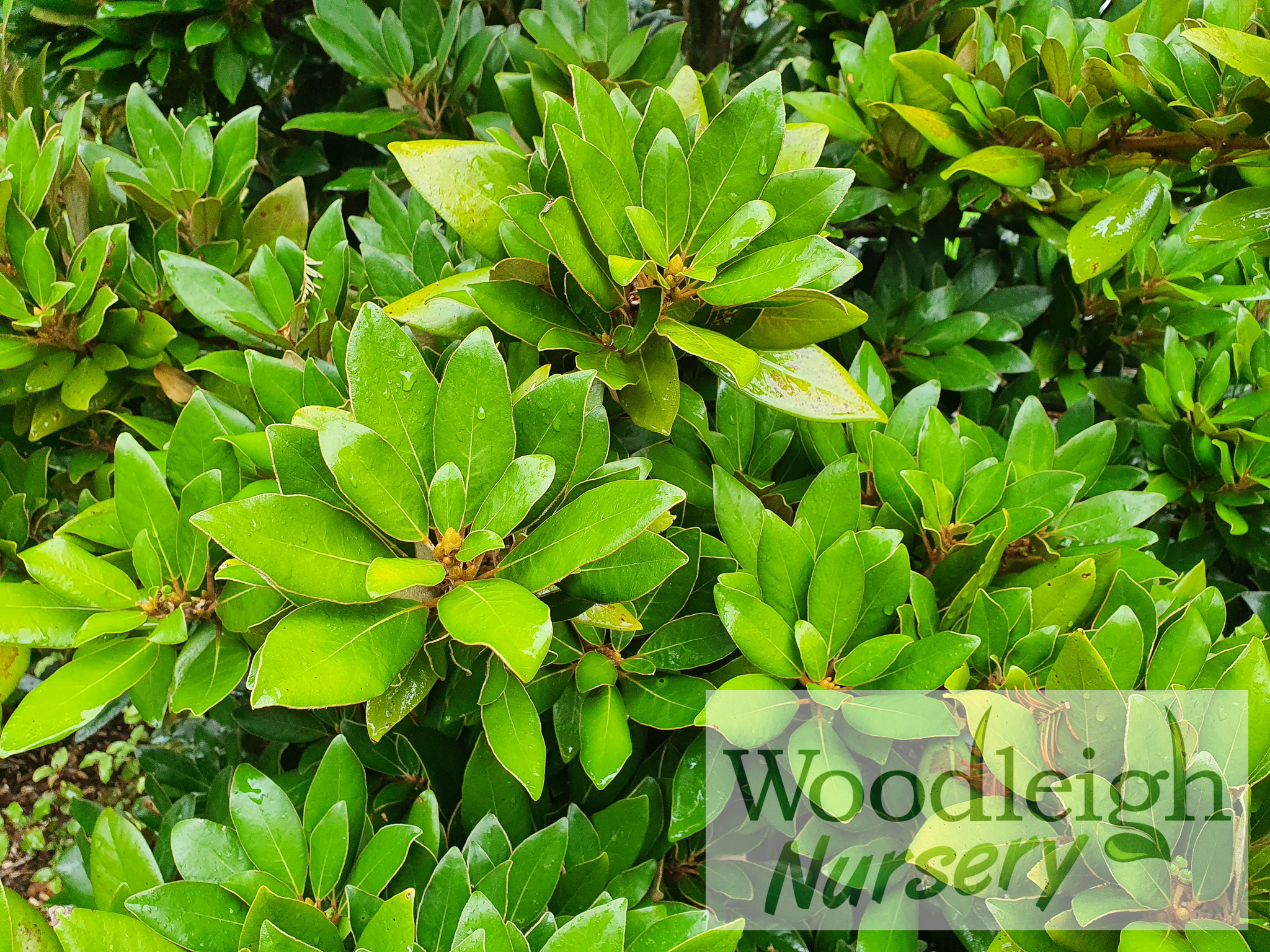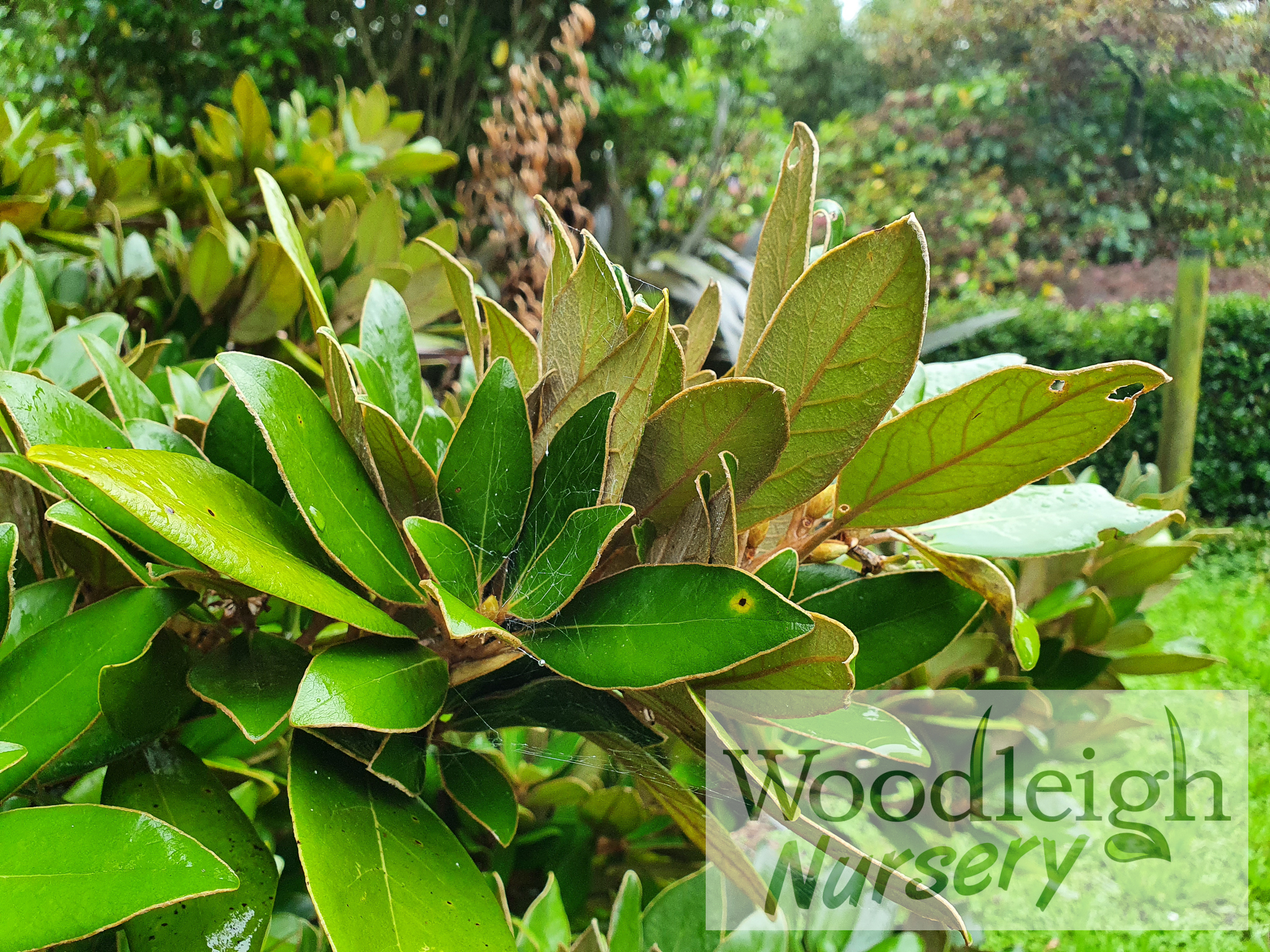 A small growing, evergreen tree from Japan and South Korea. Uncommon. Very attractive foliage and form. Blue-green leaves, with golden tomentum underside. Maintains tidy form without pruning. Prefers moderate climate.