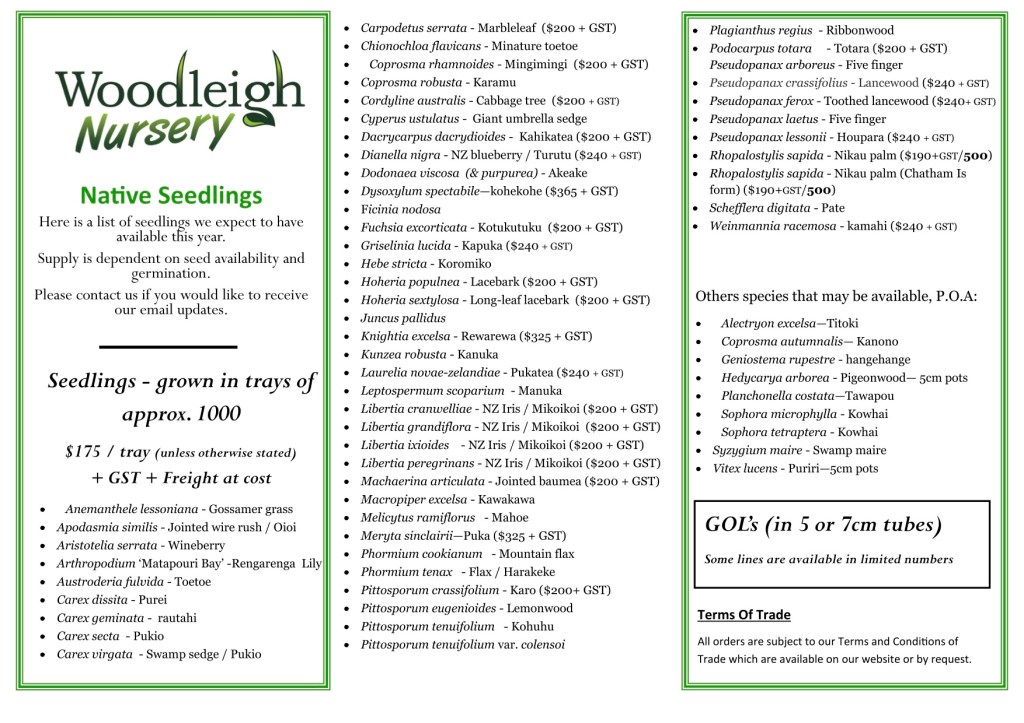 Seedlings available in trays of approx. 1000 – $175 per tray + GST + Freight at cost unless otherwise stated.